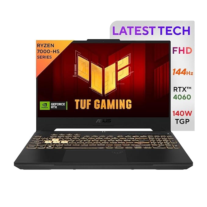 ASUS TUF Gaming A15, 15.6″ FHD 16:9, 144Hz 250nits, AMD Ryzen 7 7435HS Processor, Gaming Laptop (16GB RAM/512GB SSD/RTX 4060/Win 11/Office Home/90WHr Battery/Mecha Gray/2.2 Kg),FA507NVR-LP104WS