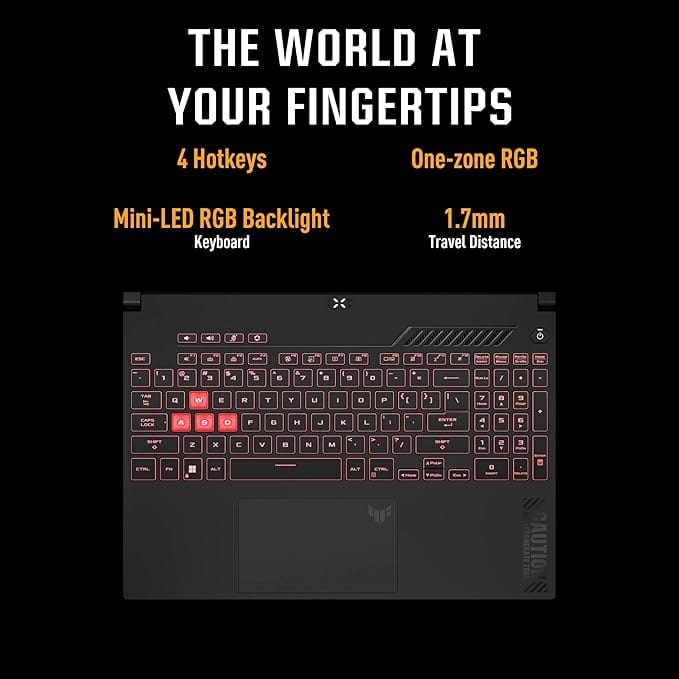 • Display :15.6-inch, FHD (1920 x 1080) 16:9, 144Hz Refresh Rate, 250nits Brightness| Keyboard : Backlit Chiclet Keyboard 1-Zone RGB